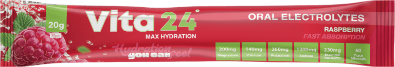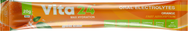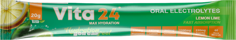 Vita 24 Max Hydration replenishes sodium lost through sweat. Proper hydration also aids recovery.